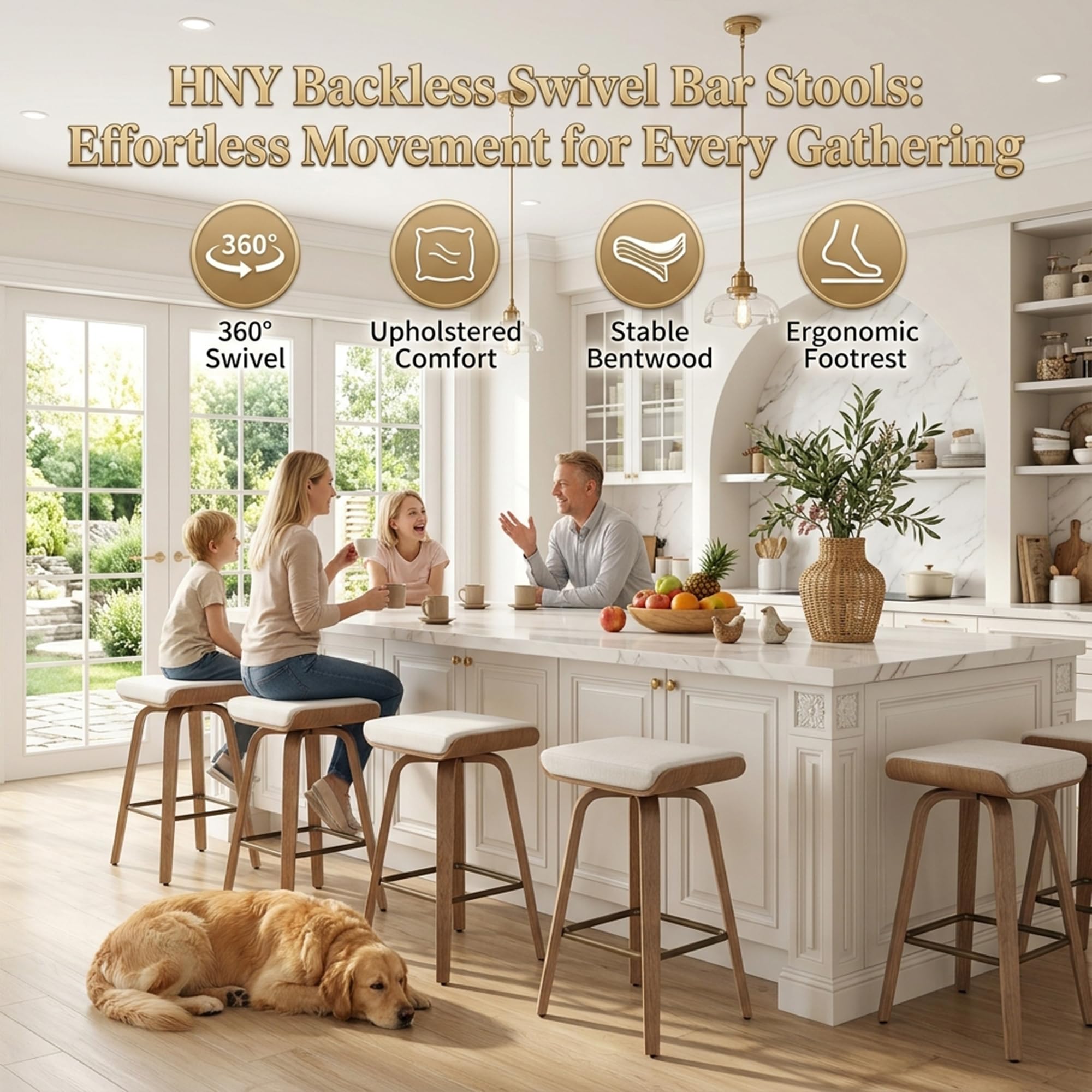 - 360 ° Rotation Function: This counter heighr barstools can rotate 360 ° in all directions, making it easy for you to turn in different directions while sitting, making communication with people around you and retrieving items more convenient